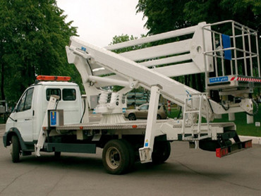 Газ- 33106(коленчатый), Характеристики :высота подъема 16 м,Грузоподъемность люльки 240,угол поворота стрелы 360.предназначается для выполнения строительных,